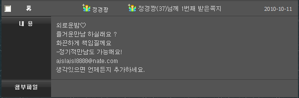 : 쪽지로 네이트 메신져 ajslajsl8888@nate.com 로 친구등록을 유도한 후, 선입금 해달라고 함
